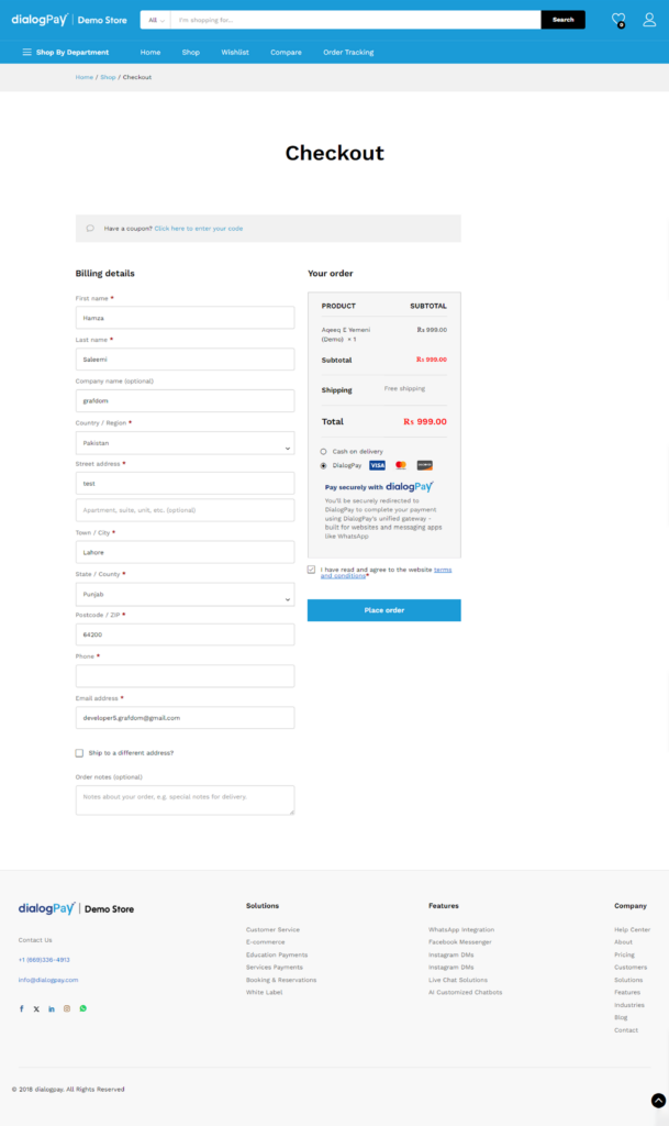 Step 3: Start Accepting Payments After saving your credentials, DialogPay will be instantly live on your checkout page, allowing you to process credit/debit cards, digital wallets, and local payments securely.